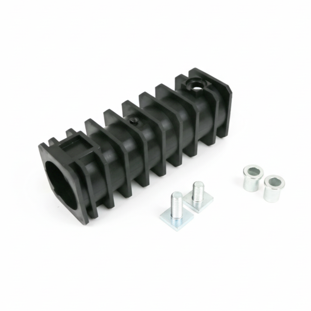- Funktion: Die Führungsbuchse gewährleistet die reibungsarme axiale Bewegung der Zugstange. Das mitgelieferte Montageset ermöglicht die sofortige Fixierung der Kartusche im Gehäuse der Auflaufeinrichtung mittels spezifischer Vierkantschrauben.